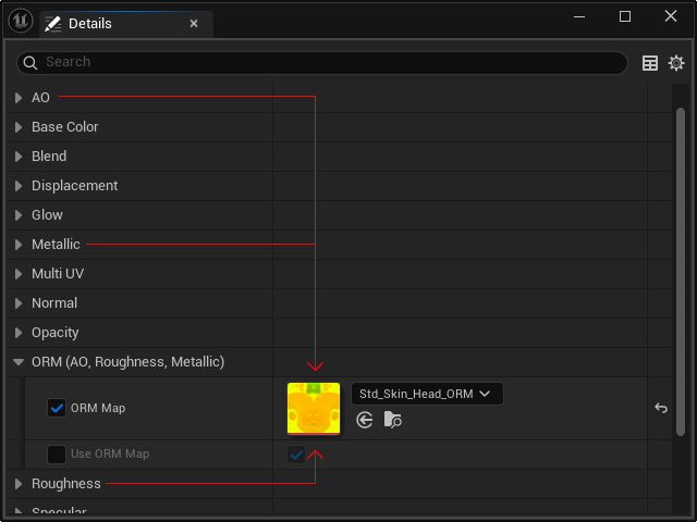 - Keep in mind that the AO, Roughness and Metallic textures will be merged and put into one channel in ORM section.