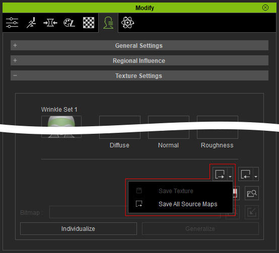 Modify > Expression Wrinkles > Texture Settings to