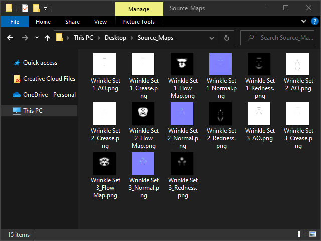 - Normal: Defines the bumpiness of the wrinkles.