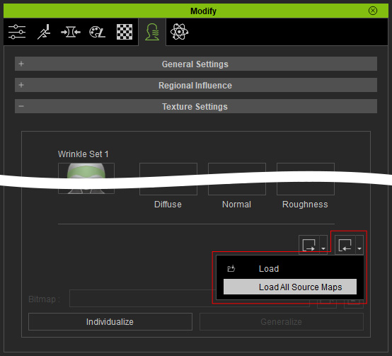 - Load the source maps back to Character Creator by clicking on