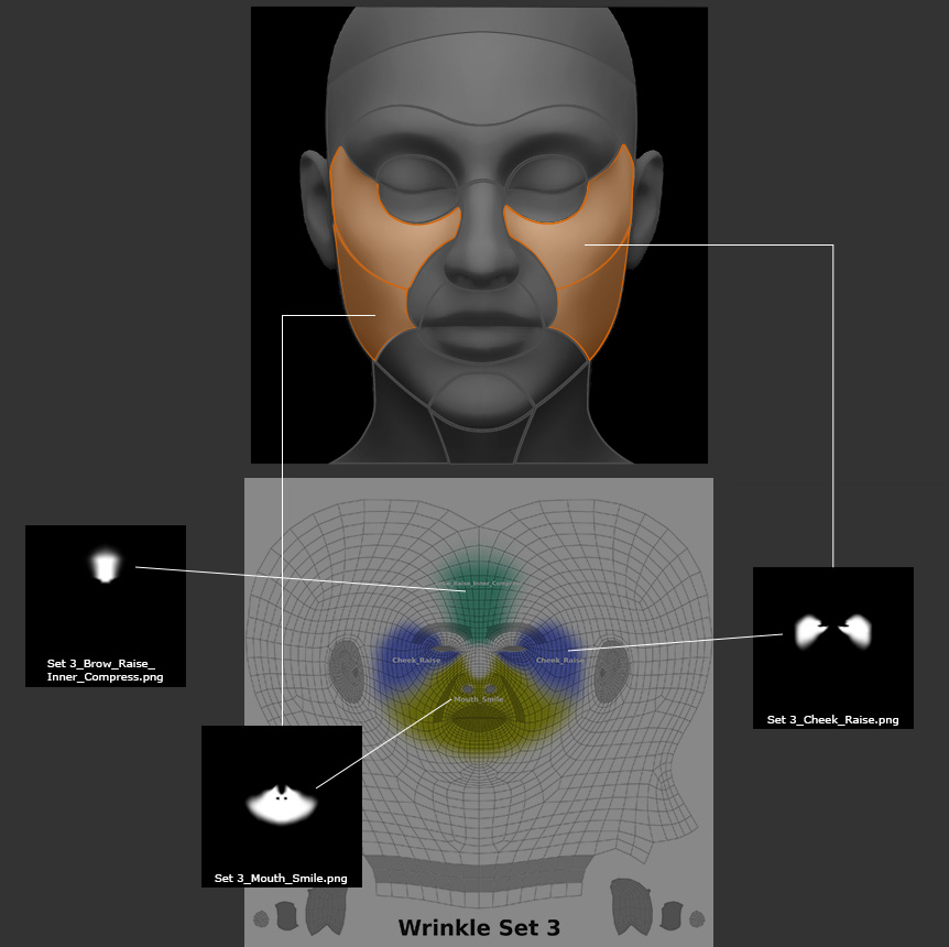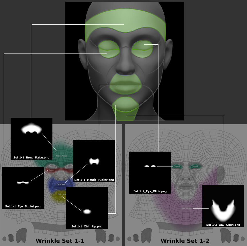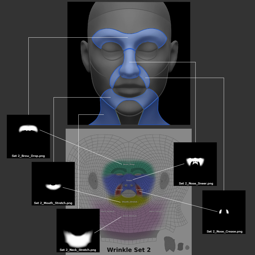 To comprehend the this article, please refer to the Relationships between Regions and Wrinkle Sets and Finding Mask for Texture Editing sections to familiarize with the concepts and techniques behind the wrinkle system.