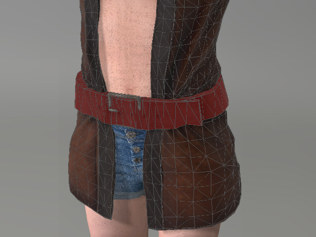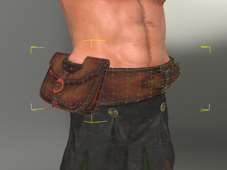 In order to modify the side bag, it must be select first. However, you can not select it without select the belt from the Scene Manager. Therefore, you can enter the Edit Mesh mode and select it by clicking the Select Not Conform Vertex button.