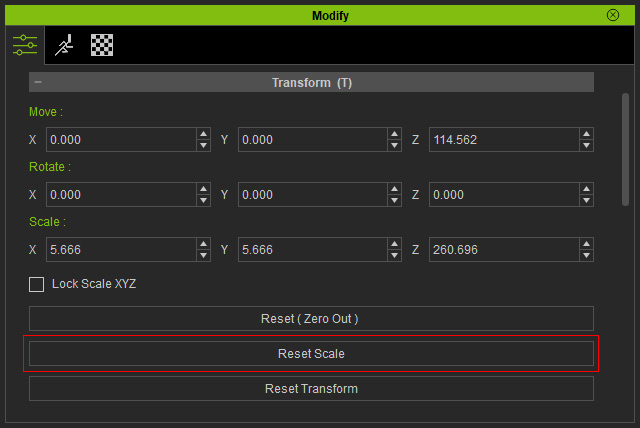 Click the Reset Scale to initialize the size for all sub-nodes to prevent structure distortions.
