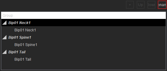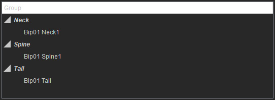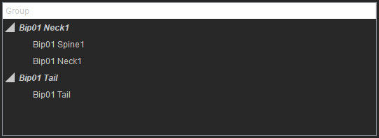 - The italic root nodes in the list are the group name. It will be shown as the track name in iClone.