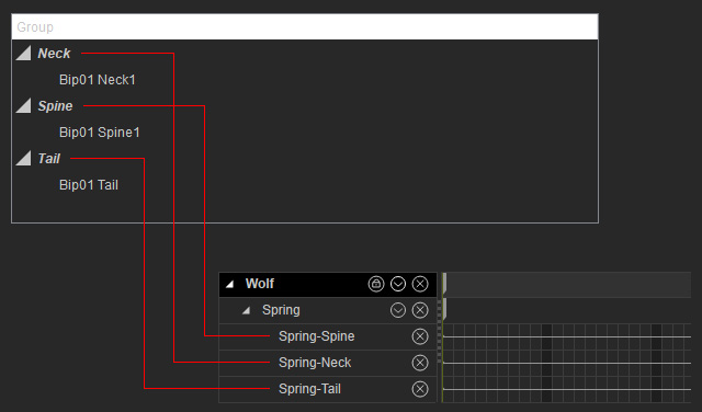 By changing the names of the spring groups, you are able to view custom names of the spring tracks in iClone.