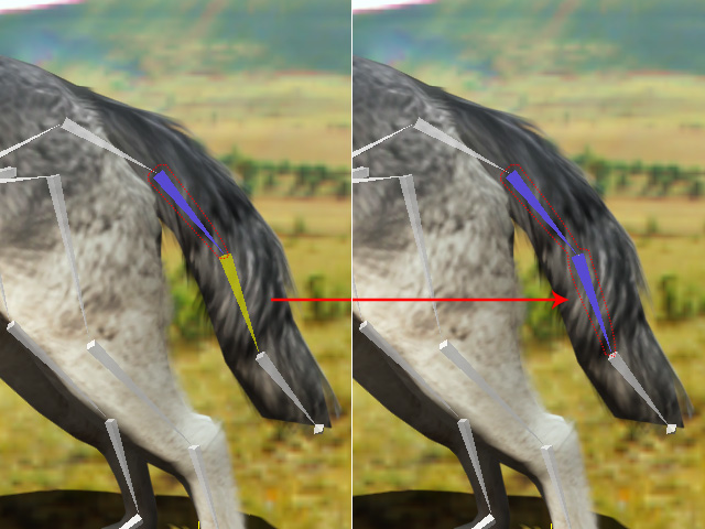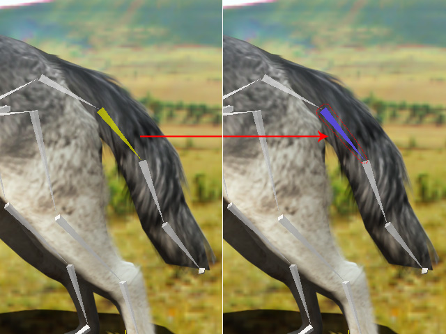 Spring Element: Four elements, which are the colored bones (in blue or orange) and belong to different spring chains.