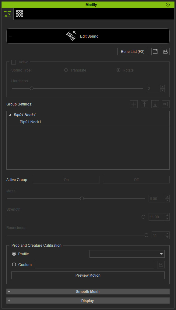 Please refer to the Managing Spring Groups section for more information about setting the overall spring effects.